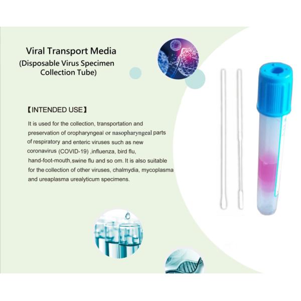 It is used for the collection, transportation and preservation of oropharyngeal or nasopharyngeal parts of respiratory and enteric viruses such as new coronavirus (COVID-19) ,infuenza, bird flu, hand foot-mouth, swine flu and so om. It is also suitable for the collection of other viruses, chalmydia, mycoplasma and ureaplasma urealyticum specimens.